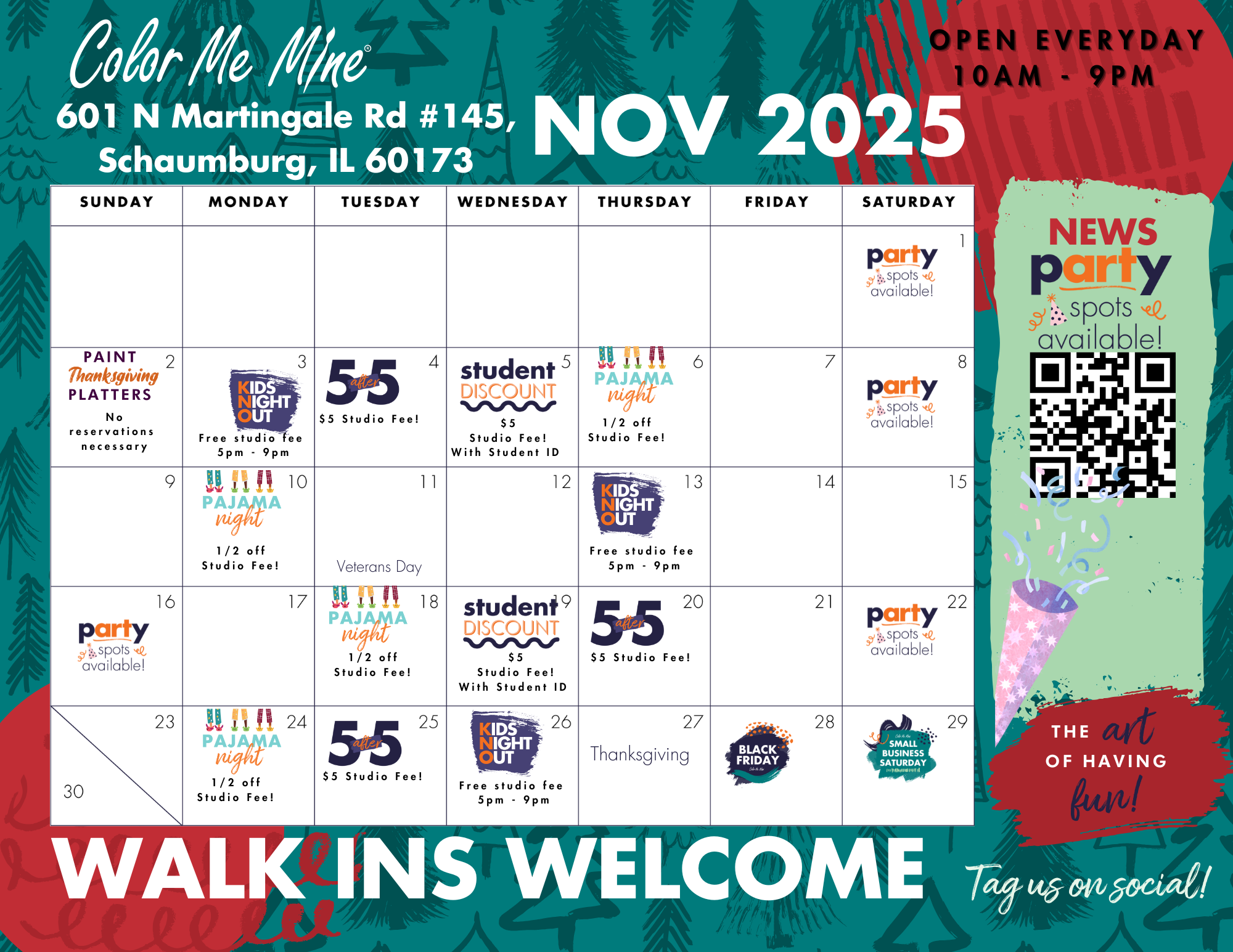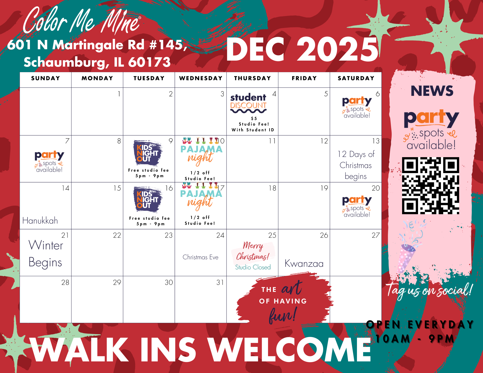 No Reservations Necessary! Our studio is open for Walk-Ins
